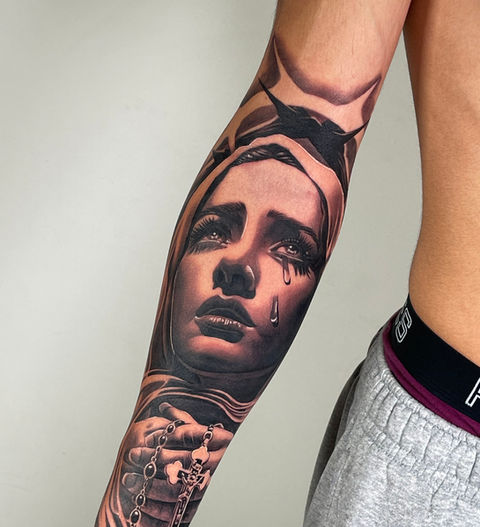 Daniel's dedication to his craft is evident in every step of the tattooing process. Starting from designing, to pasting the stencil on the body, to the tattooing process, and the final tattoo look, each tattoo is carefully thought through.